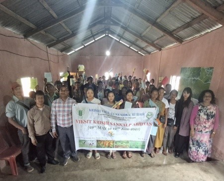 ICAR-Krishi Vigyan Kendra (KVK), West Garo Hills launched and flagged off three Krishi Rath under the Viksit Krishi Sankalp Abhiyan - Bharat Krishi Jagran Yatra: Anusandhan Kisan Ke Dwar as a Pre-Kharif Campaign on 29th May 2025.The event was inaugurated by Chief Guest Mr. Kurosh M. Marak, Ex-MDC, Barengapara, in the presence of over 995 (287-Male and 708 Female)participants. Special Guests included Prof. Puspita Das (CAU), Mrs. Paulette A. Sangma (DAO), Dr. Serenebell W. Momin (AH & Vety), Dr. H. Talang, Dr. Christy Sangma, Dr. Bijaya Laxmi, Dr. Niranjan S, and Mr. Prodeep M. Sangma (ATMA).The event began with a welcome address by Dr. Monica S. Singh, Head, KVK, in which she welcome the guest and participants and briefed about the programme significance followed by an address by Dr. H. Talang on ICAR technologies like soil health and climate resilience. Dr. Serenebell W. Momin and Mrs. Paulette A. Sangma emphasized off-season vegetable farming, vermicomposting, livestock care, and government schemes. The three Krishi Rath teams comprised ICAR scientists, CAU faculty, line department officials, ATMA staff, and progressive farmers. The teams covered 11 villages: Baburambil, Gangbanga, Dolgengaggre, Dapgre, Kongtakpara, Godagre, Magupara, Bamonpara, Chongnapara, Madra, and Babelapara.They reached 974 farmers, including 681 farm women, promoting sustainable agricultural practices. Team leaders Dr. Joyoshree Mahanta, Dr. Tarun K Das, and Dr. N Arun K Singh shared insights on Integrated Farming Systems and feed/health management.Prof. Puspita Das introduced innovations like SSP-CAU Bio-enhancer slurry and organic rice practices to boost yield and income. The Chief Guest highlighted the significance of VKSA in bridging the gap between research and farmers. Extension literature on profitable agricultural technologies was also distributed. The program concluded with a vote of thanks by Mr. Pradeep Sangma, Deputy Project Director, ATMA.