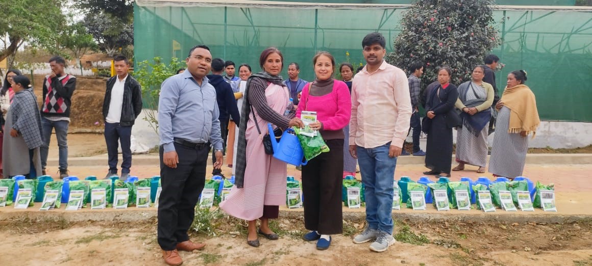 A three days training cum input distribution programme on “Livelihood Improvement of Tribal farmers of Meghalaya through Scientific Method of Cultivation of Spice, Tuber, Vegetable and Fruit Crops" was organised at Horticulture Section, DSRE, ICAR Research Complex for NEH Region, Umiam, Meghalaya under AICRP on Spices on 5th to 7th March, 2025. The program was organised with the objective to disseminate technical knowhow on the advanced scientific method of cultivation of spice, tuber, vegetable and fruit crops. A total of 26 farmers from three districts (Marngar, Lawmei and West Jantia Hills) of Meghalaya participated in the programme. The participant farmers were given both theoretical and hands-on training on advance scientific method of cultivation of vegetables such as pro-tray nursery raising, hydroponics and protected cultivation, seed rhizome treatment of turmeric and ginger, grafting, major insect pest and diseases of important horticultural crops. Exposure visits to Engineering Section, DSRE was also arranged to familiarize the farmers to farm operational such as turmeric slicer and washer developed by the institute. As a part of input distribution the farmers were distributed with vegetable seeds (brijal, coriander, cucumber), irrigation cans and turmeric seed rhizomes. The beneficiaries appreciated the efforts of ICAR Research Complex for NEH Region for conducting such programme and introducing them to new technologies. The program was coordinated by Dr. M. Bilashini, Dr. H.D. Talang, Dr. R. Teja, and Dr. Rumki Ch. Sangma.