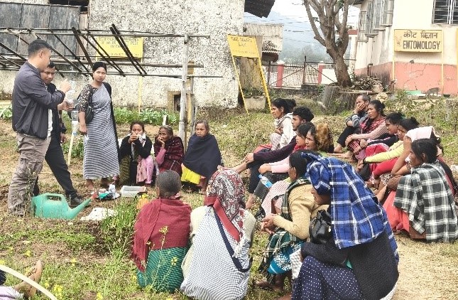 A Three Days Training Programme on “Principles and Techniques of Integrated Pest Management (IPM) in Vegetable Crops for Tribal Farmers of Meghalaya” was organized under the Tribal Sub Plan (TSP) at the Division of Crop Science, ICAR Research Complex for NEH Region, Umiam, Meghalaya during 25th–27th February, 2026. A total of 26 farmers from Klew, Umramblei and Umraleng villages of Ri-Bhoi district actively participated in the training programme. The programme commenced with a welcome address delivered by Dr. Rumki H. Ch. Sangma, Sr. Scientist, Division of Crop Science, Dr. Pankaj Baiswar, Pr. Scientist and Head, Division of Crop Science, highlighted the importance of scientific package of practices of growing vegetables, insect pest management techniques, use of biofortified FYMs, etc, for achieving sustainable production in vegetable cultivation. During the training programme, several technical sessions were conducted covering the following topics: Nursery raising and package of practices for growing important vegetables crops by Dr. M. Bilashini Devi, Scientist, DSRE; Soil management for resilient Agroecosystems: A pathway to enhance IPM strategies by Dr. L. Joymati Chanu, Scientist, DSRE; Integrated disease management of vegetable crops by Dr. Tasvina R. Borah Sr. Scientist, DCS; and Importance and scope of protected cultivation of vegetable crops by Dr. H. Talang, Scientist, DSRE. Integrated Pest Management on vegetable crops by Dr. Rumki H. Ch. Sangma, Sr. Scientist, DCS and Economics of IPM in vegetable crops by Dr. Anjoo Yumnam, Scientist, DTAC. Besides these, hands on training and demonstration on the use and application of Biopesticides and Good Agricultural Practices on use of pesticides in crops was given by Dr. Y. Bijenkumar, Dr. Niranjan Kumar, Scientists, DSRE and Dr. K. Kuotsu (YP-II), DCS. Scientists and farmers interaction was a major part of the programme, where the queries of the farmers were answered by the scientists. Essential agricultural inputs like vegetable seeds of pea, chilli, tomato, coriander, lettuce, and cucumber along with biopesticides and fruit fly traps were distributed to all participants to support adoption of IPM practices in their respective fields. The programme was coordinated by Dr. Rumki H. Ch. Sangma, Dr. Pankaj Baiswar, Dr. Y. Bijenkumar, Dr. Tasvina R. Borah, Dr. H. Talang, Dr. M. Bilashini Devi, Dr. L. Joymati Chanu, Dr. Niranjan Kumar and Dr. Anjoo Yumnam. Sincere gratitude goes to the Director of the Institute, Dr. Ghatak sir for his ever guidance, Dr. B.P. Singh, Nodal Officer (TSP) for providing funds for conducting the training programme, Mr. Shyamson, Mr. Ankit Singh, Mr. Surya, Mr. Khrieketou and all the other permanent and contractual staffs that have directly or indirectly contributed in organizing this programme.