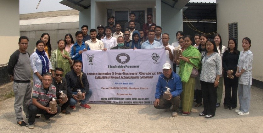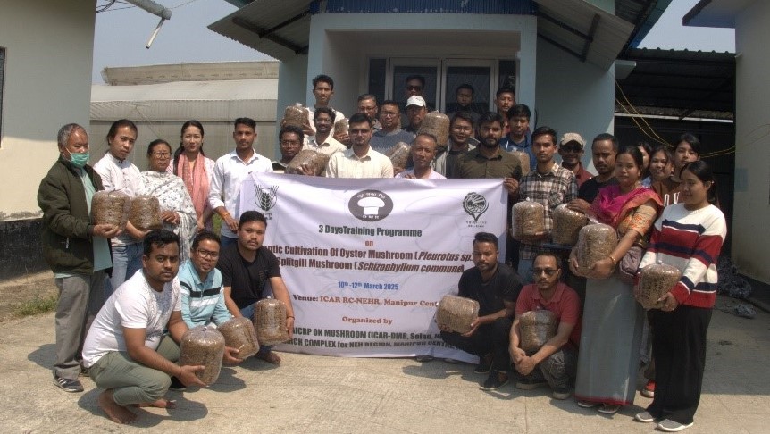 The farmers received hands-on training on the scientific cultivation of summer oyster mushroom variety, RC-Manichengum-1, released by ICAR Manipur